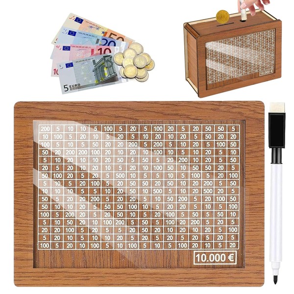 - Wooden money box: you will receive 1 wooden money box, 1 a transparent writing board and 1 marker, teach your children the value of saving and watch their savings grow with our piggy bank. Wooden money box, fashionable appearance, suitable for people of all ages