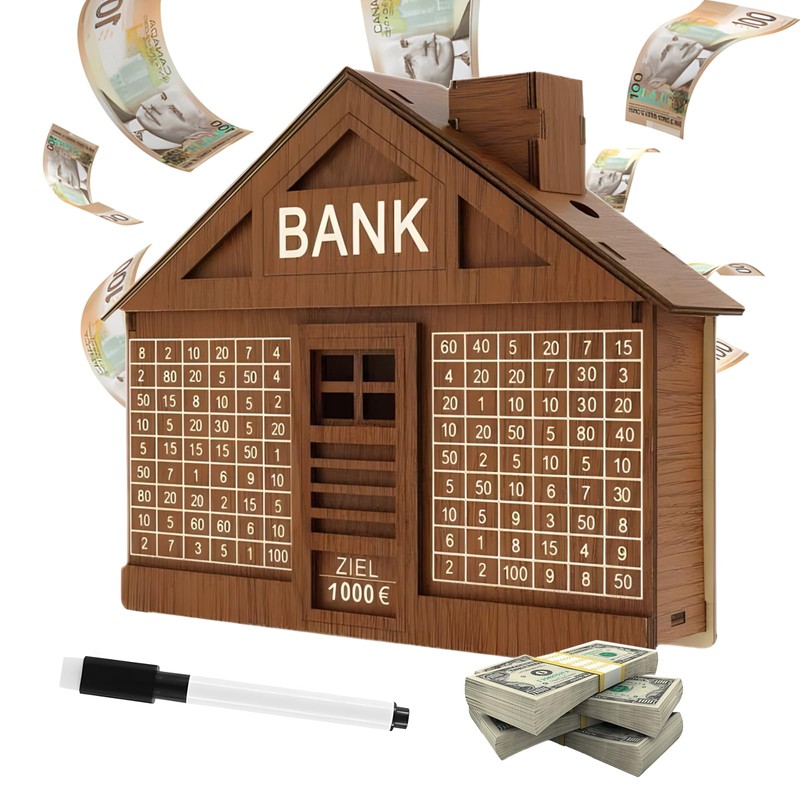 - Set savings goals: the wooden money box has special holes for coins and banknotes, and the saving target amount makes saving easy and fun, such as breaking through levels, helps you track your savings, achieve your savings goals and develop habits for financial success.