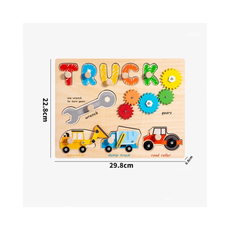 Wooden Montessori Jigsaw Busy Board Interactive Puzzle for Toddlers, Wooden Activity Board with Educational Activities for Learning Fine Motor Skills. (Truck)