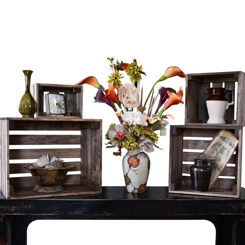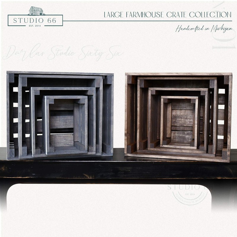 - All 4 crates come fully assembled and finished with a beautiful medium brown stain and are handmade in the USA