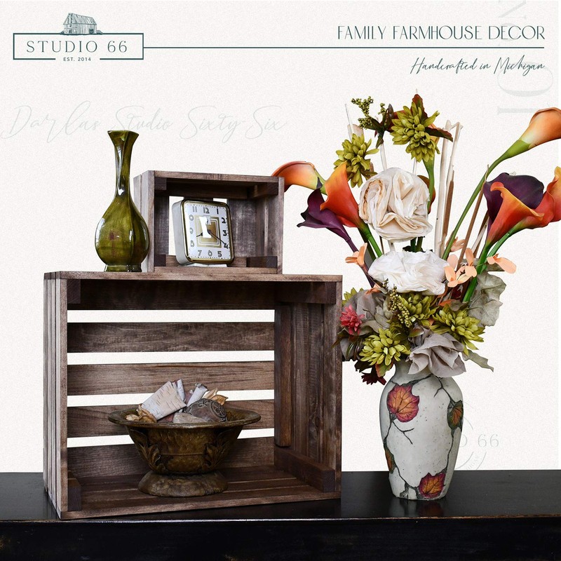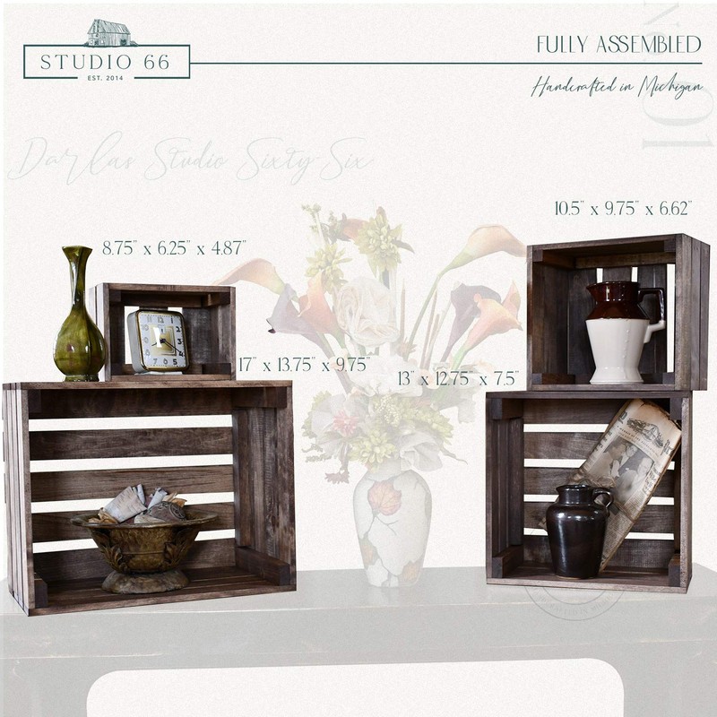 - All 4 crates come fully assembled and finished with a beautiful medium brown stain and are handmade in the USA