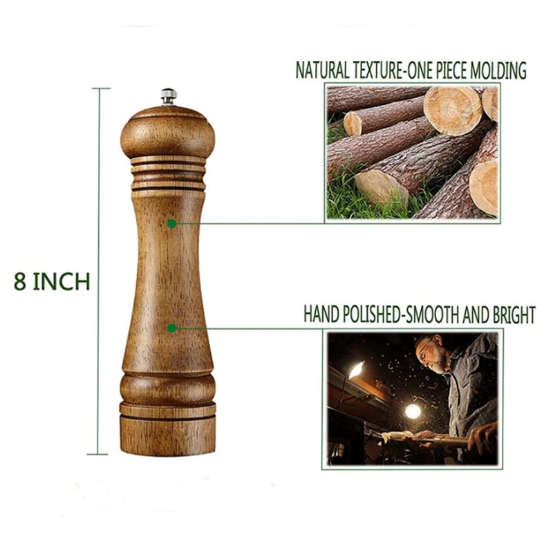 Wooden Pepper Mill Pepper Grinder Kit Manual Mills Solid with Strong Adjustable Ceramic Grinders Set 8 Inches