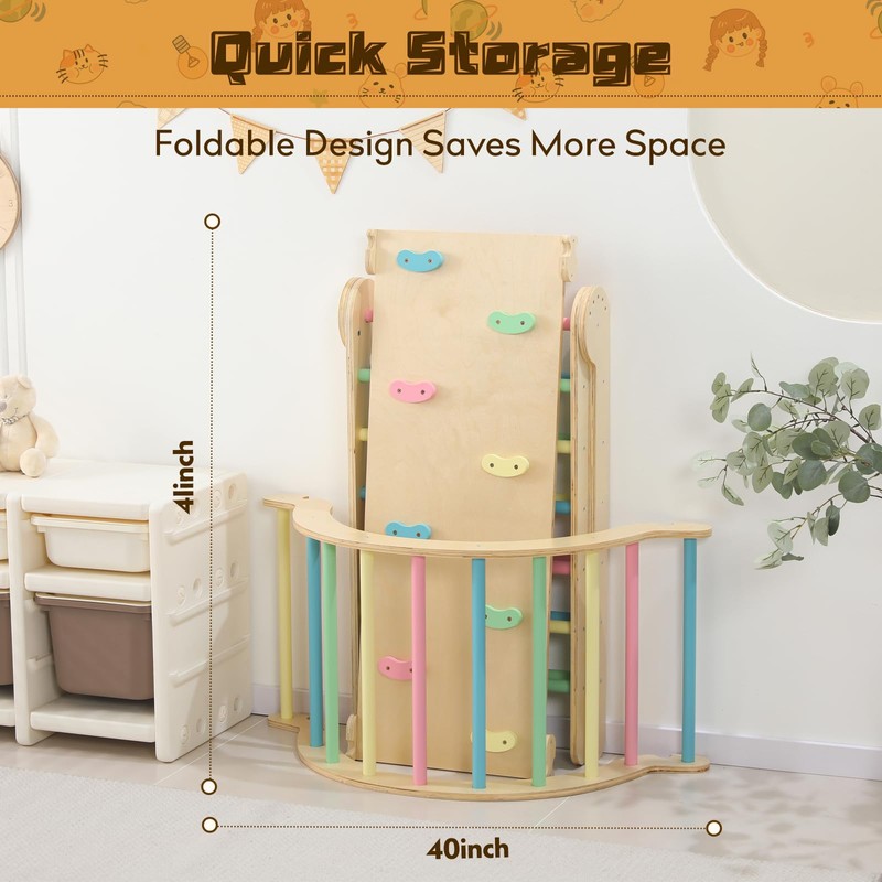 • 【Carefully Designed & Easy to Store】This Montessori Play Gym for Toddler has been carefully designed, taking into account the height, width, top bar, step spacing, and climbing angle, aiming to provide the best experience for your child. In addition, it is foldable for easy assembly and storage. Simply lift the climbing triangle, slide the removable side onto the fixed side, and close it. You can then store it in a corner, saving your space and time.
