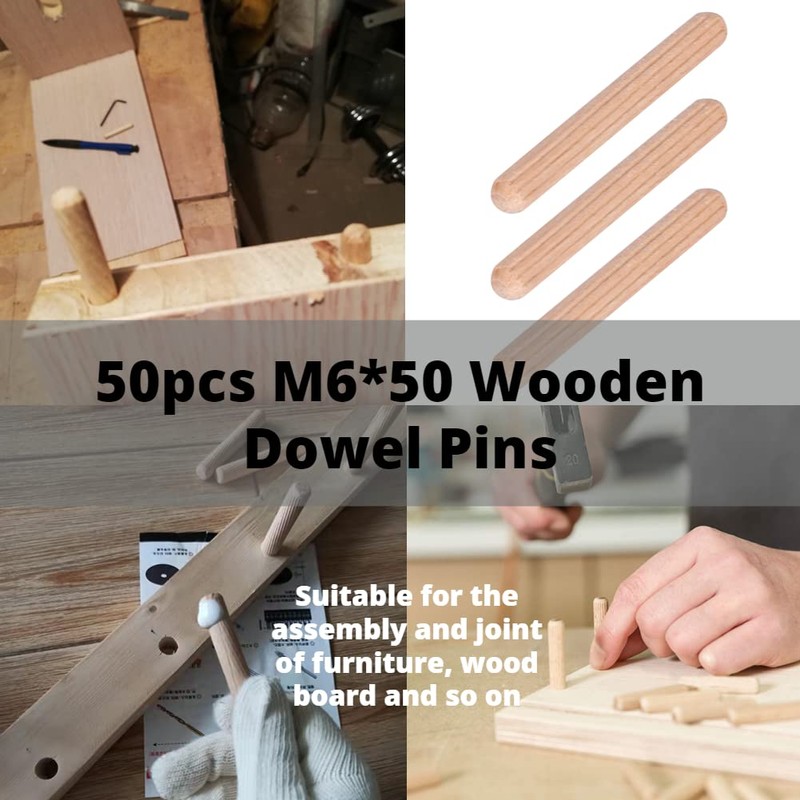 Wooden Pins Round Stud Unthreaded Cylindrical Pins for Drawer Cabinet M6 x 30/40/50 mm (M6 x 50)