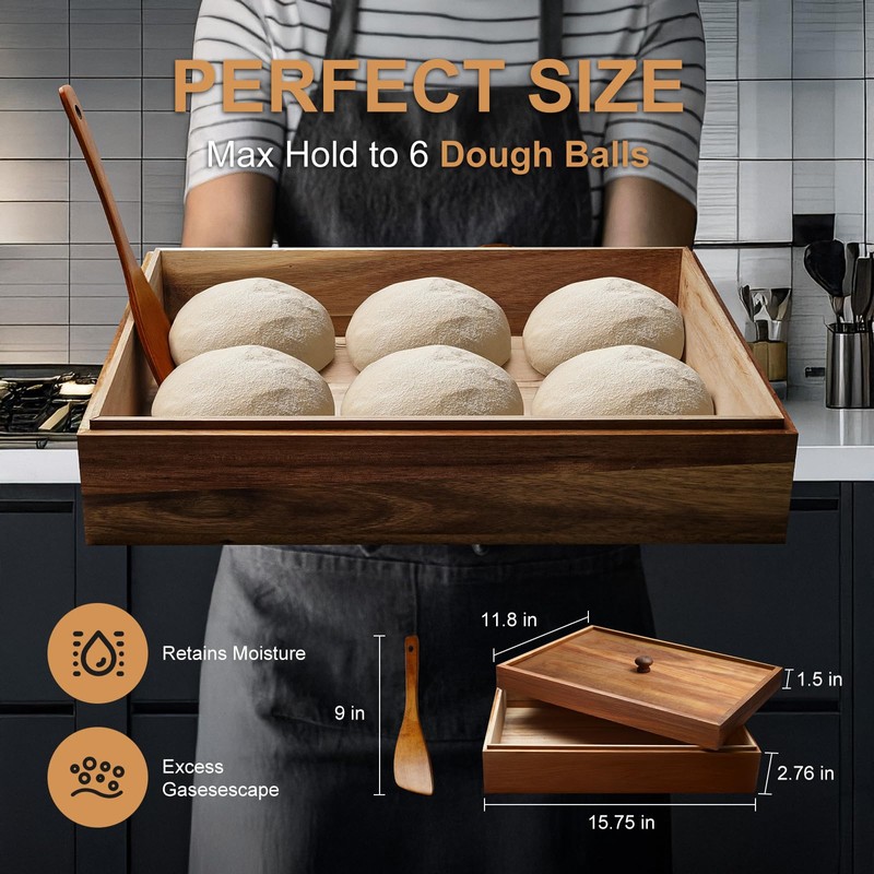 - Perfect Gift For Baker: Imagine your pizza with a puffed outer crust and a light, crisp thin bottom—this wooden box is the secret to making that a reality. This proofing container is not just for pizza but also for all your dough proofing needs. This dough box is the epitome of a great gift for any baking enthusiast, and we promise that this box can elevate your home-baked goods to new heights of flavor and texture