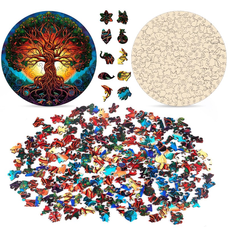 Wooden Puzzle Adults, 28 x 28 cm, Tree of Life Wooden Puzzles, 246 Pieces, Puzzle Wooden Shape Puzzle Pieces for Adults and Teenagers, Family Game, Birthdays, Christmas Gifts