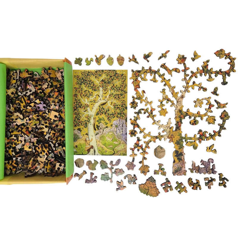 Wooden Puzzle for Adults - Uniquely Shaped Pieces - Made in The USA by FoxSmartBox - 363 Pieces - Squirrels