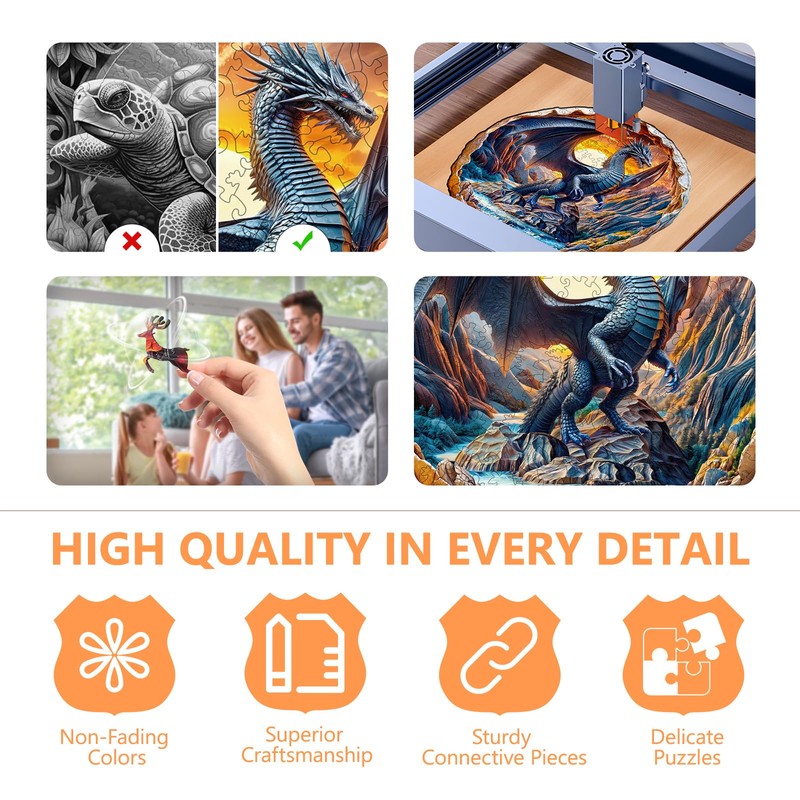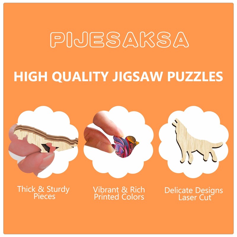 - 🦖 Top Quality - This wooden puzzle is made of environmentally friendly materials, which are odorless and very safe. Jigsaw puzzles are printed with UV technology, the colors are bright and long-lasting. Each piece of this puzzle is precisely laser cut. It has a smooth surface and neat edges. Each piece is interlocked tightly.