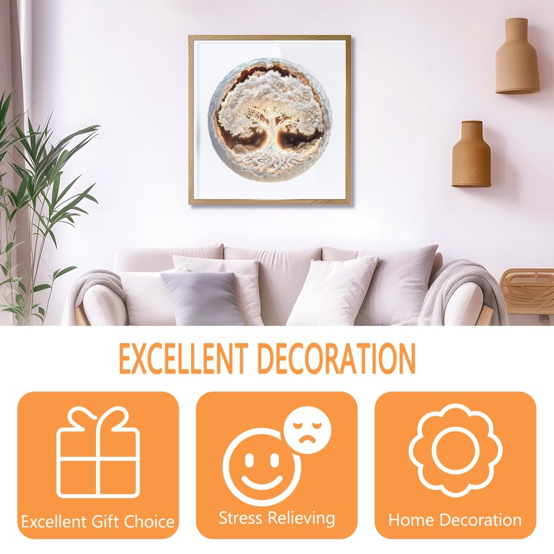 - 🌳✨ A Stunning Spherical Puzzle: This captivating "Tree of Life" art piece features a delicate white tree with sprawling branches and roots, symbolizing growth and unity. Set against a deep, moody background, its high-contrast design and intricate shading evoke a mystical, celestial beauty. 🍃🌌