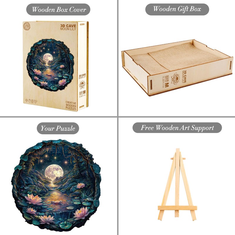 - [Wooden Jigsaw Puzzles for Adults Kids] - This 3D cave moon lotus shaped jigsaw puzzle is made of high quality natural wood, safe and durable. The wooden puzzle is a colorful puzzle with clear and vibrant images that won't fade over time. Advanced laser cutting technology gives the adult puzzles very smooth edges and a very comfortable feel, protecting your hands from injury.