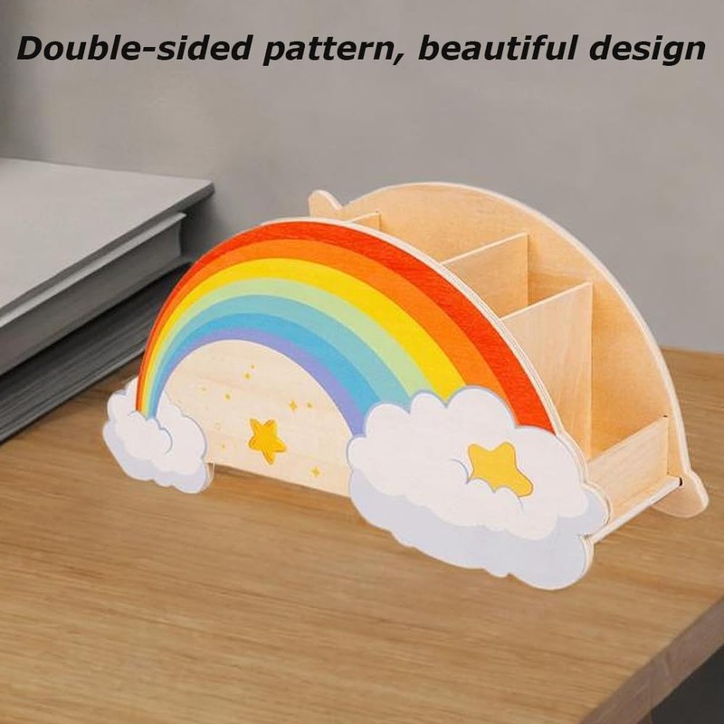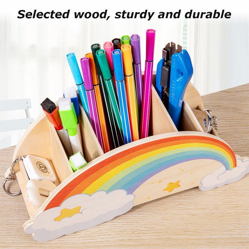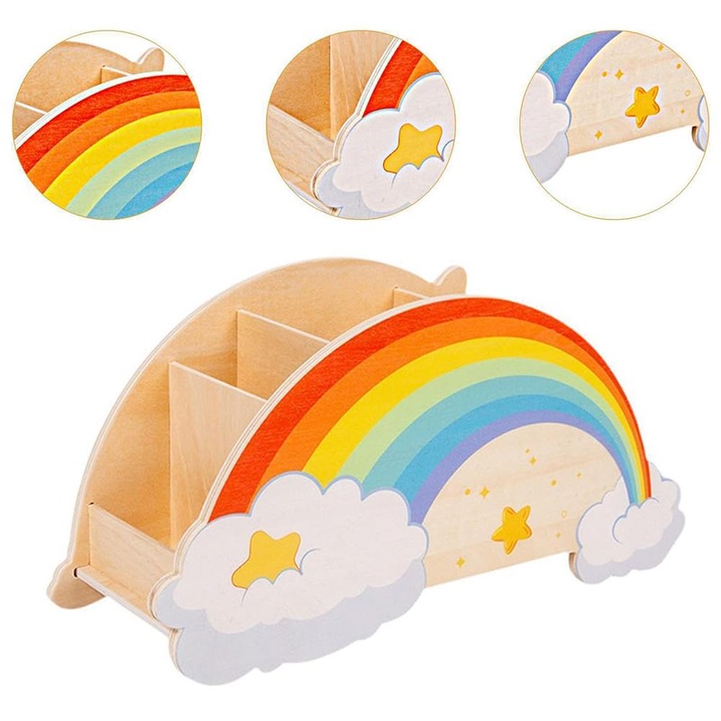Wooden Rainbow Pen Holder,Desk Organizer,5 Compartments Pencil Holder,Large Capacity Pen Container,for DIY Creative, Desk Tidy, Pencil Holder