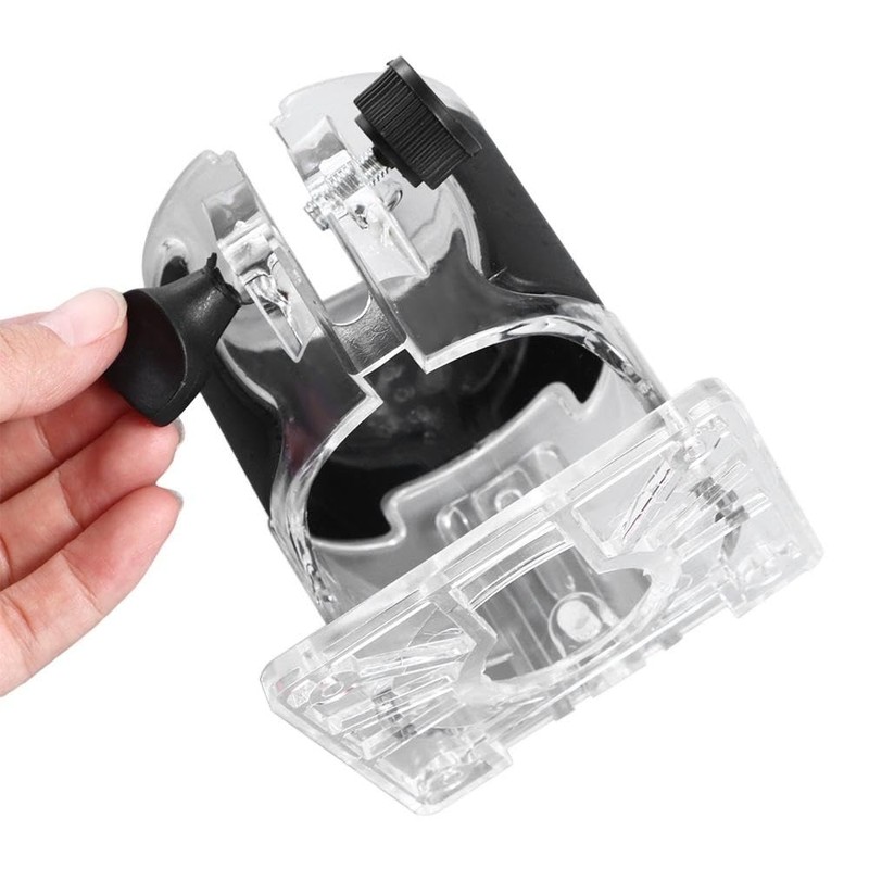 - By adjusting the knob, the base can be securely locked and tightened onto the trimmer to prevent it from falling off during operation. It provides additional security and stability. The transparent base provides a clear operational view, improves visibility, and achieves better woodworking effects.