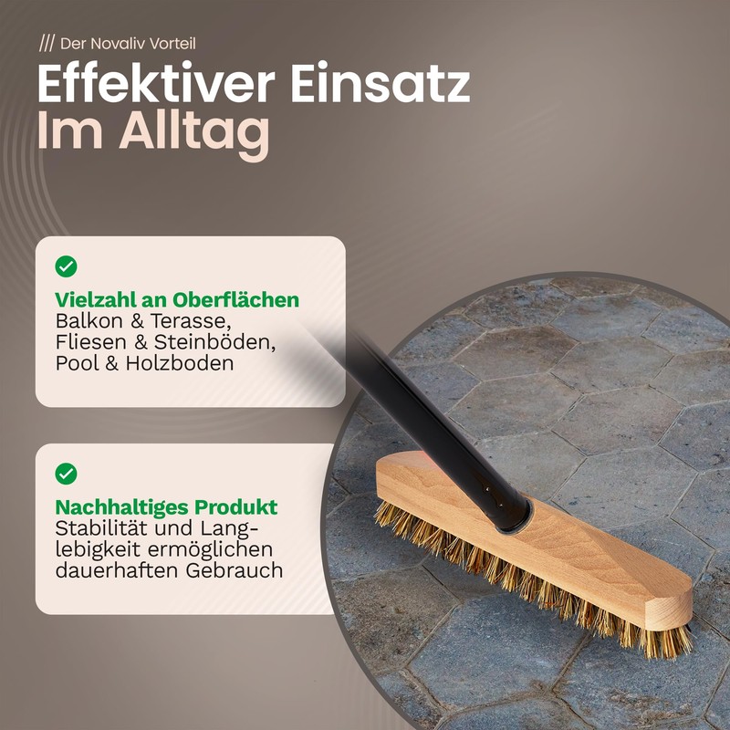 - Box contents: you will receive a wooden scrubber with bristles including Novaliv plug-in handle, in the colour wood, with the dimensions (L x H x W): 130 x 4 x 7 cm.