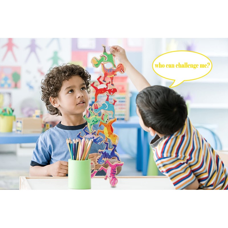 - 【EARLY LEARNING STACKING TOYS】 The dinosaur balance game aim to stack these dinosaur to help children increasing cognitve, observation, logical thinking, concentration, hand-eye coordination and fine motor skills, and improves their emotional control and stress resistance. The stacking building blocks can contribute to parent-child interaction, many people cooperate to play games to improve children's social skills, develop teamwork skills, and keep kids away from electronic devices.