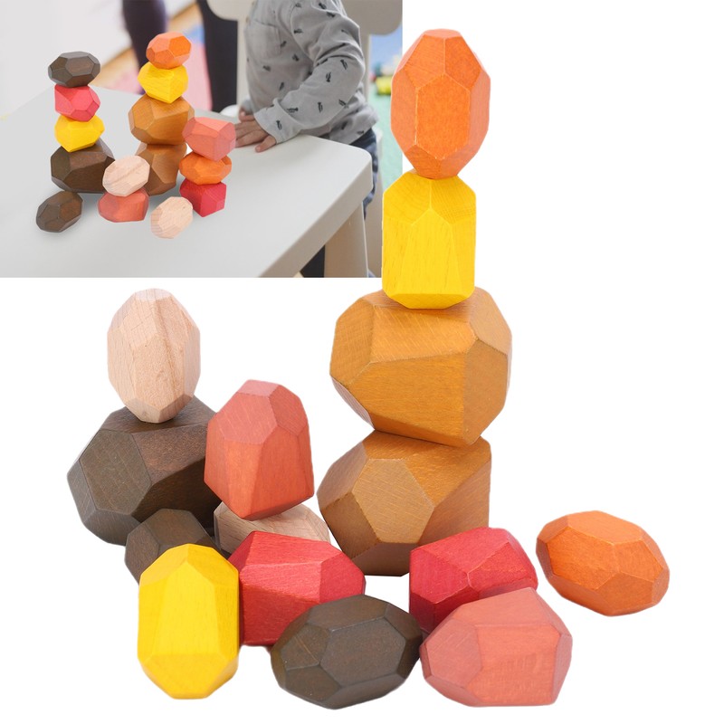 Wooden Stacking Game Building Blocks Educational Desktop Games for Kid Children15pcs