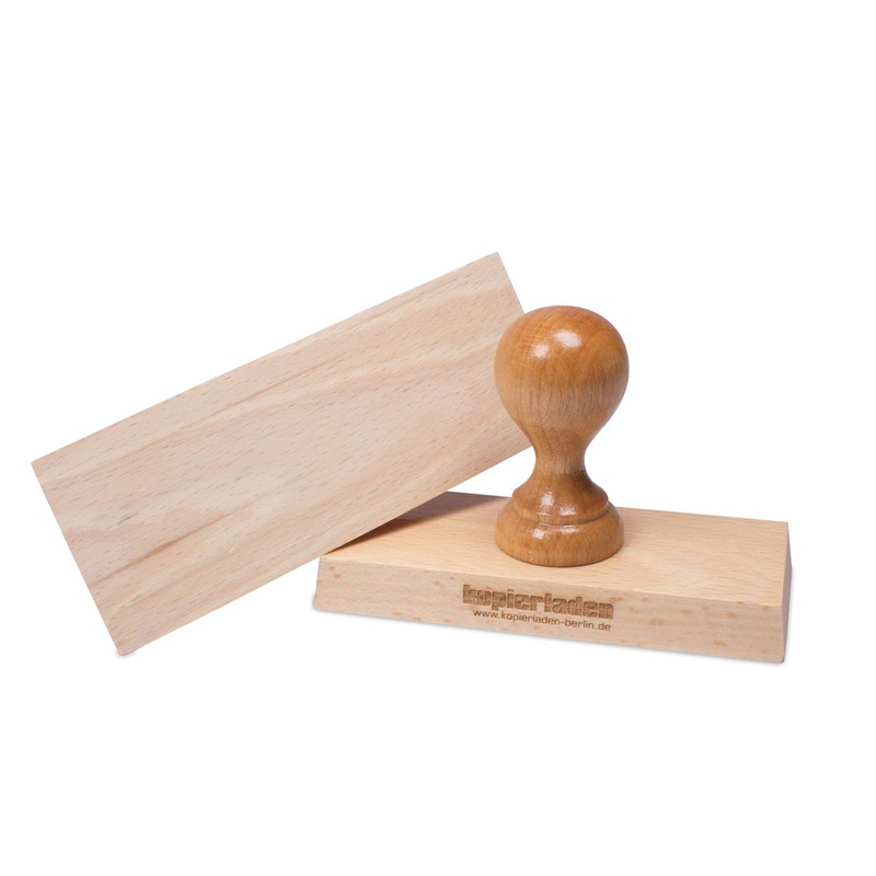 - High quality beech wood stamp body with marking point for alignment on the handle