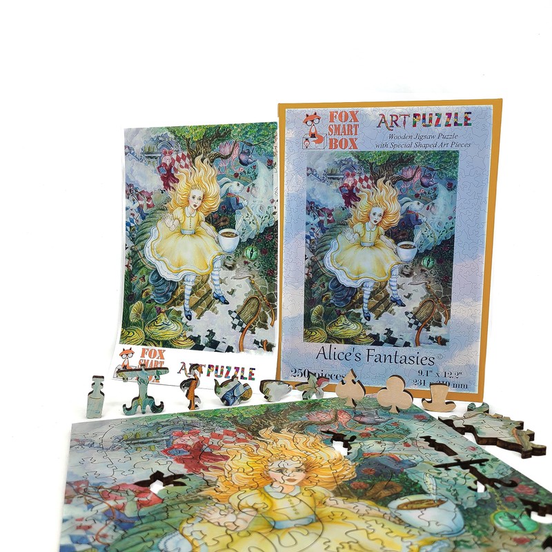 Wooden Рuzzle for Adults with Uniquely Shaped Pieces - Made in USA by FoxSmartBox - 250 Pieces - Alice's Fantasies