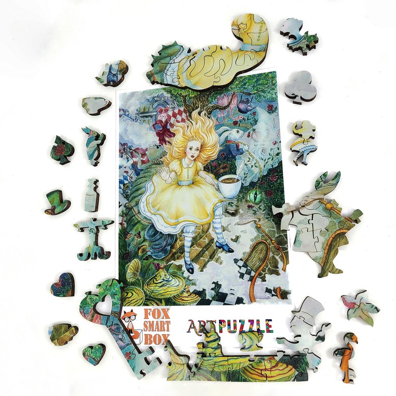 Wooden Рuzzle for Adults with Uniquely Shaped Pieces - Made in USA by FoxSmartBox - 250 Pieces - Alice's Fantasies