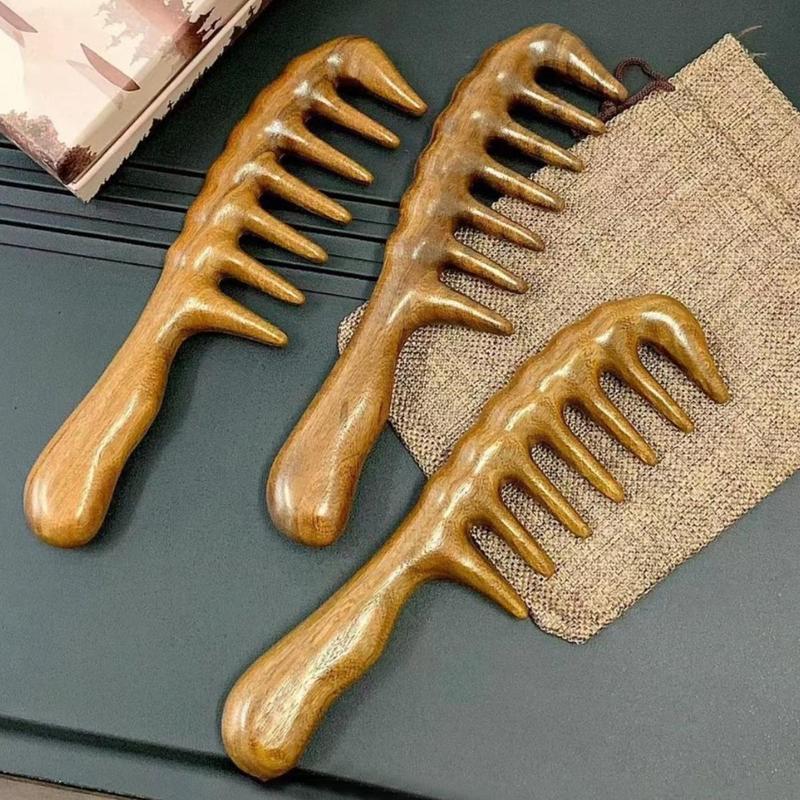 Wooden Wide Tooth Hair Comb, 1 Count Scalp Massage Comb, Curly Hair Detangling & Styling Tool, Hairdressing Comb for Women and Men