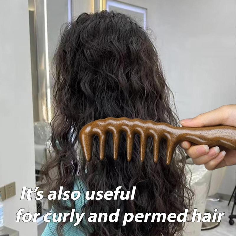 Wooden Wide Tooth Hair Comb, 1 Count Scalp Massage Comb, Curly Hair Detangling & Styling Tool, Hairdressing Comb for Women and Men