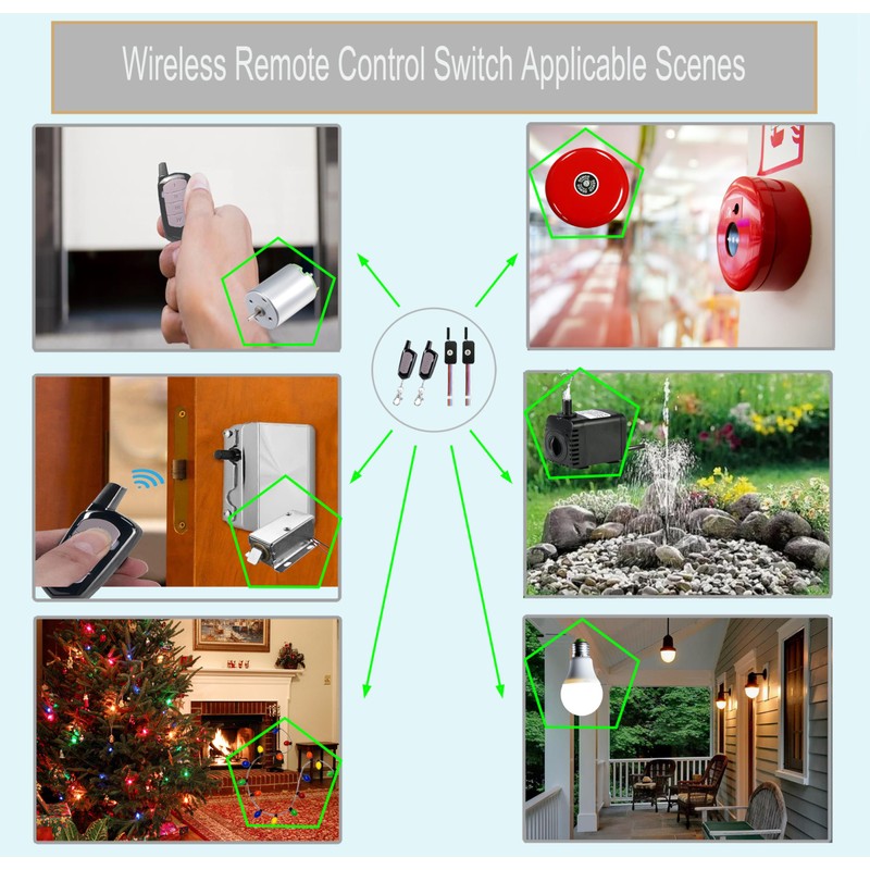 This DC 12V wireless remote switch is suitable for lamps, LED light strips, Christmas tree light strings, electric door locks, alarms, access control systems, electromagnetic doors, DIY remote control switches and so on.