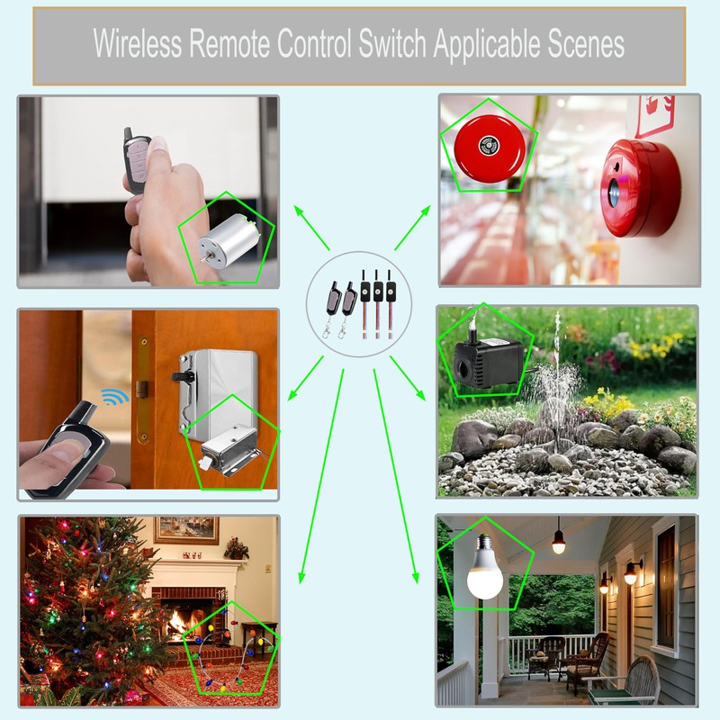 This wireless DC 12V remote switch is suitable for lamps, LED light strips, fairy lights for Christmas trees, electric door locks, alarm systems, access control systems, electromagnetic doors, DIY remote control switches and so on.