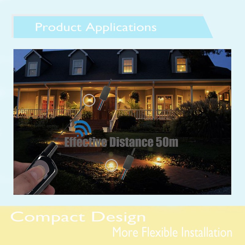 This wireless DC 12V remote switch is suitable for lamps, LED light strips, fairy lights for Christmas trees, electric door locks, alarm systems, access control systems, electromagnetic doors, DIY remote control switches and so on.