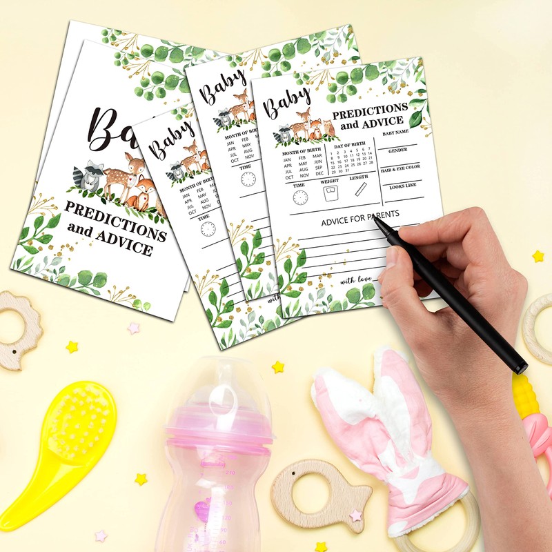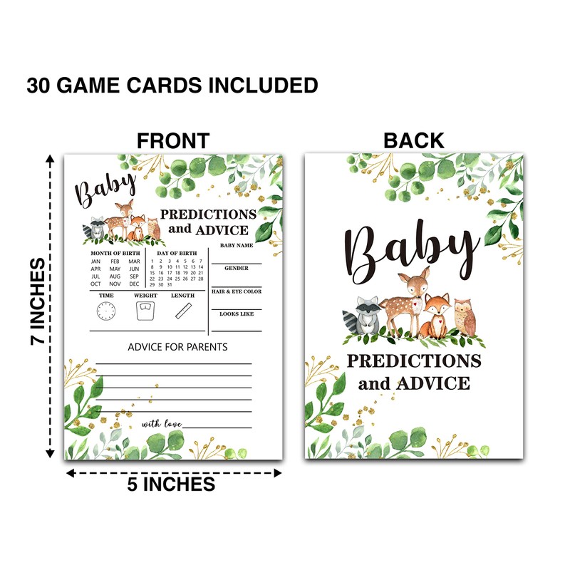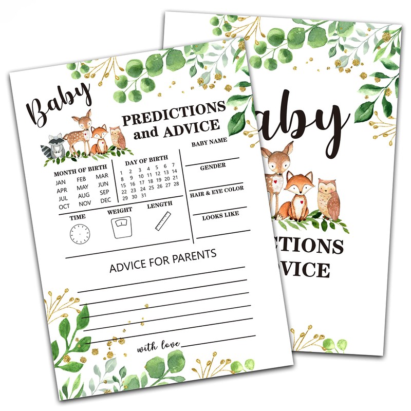 Woodland Animal Baby shower Predictions And Advice Cards(5"X7")-Safari Baby shower Double-Sided Game Cards Party Favor-30Pcs-C06