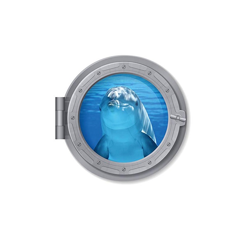 Woodland Arts 3D 11 x 11 inch Undersea Cute Dolphin Blue Deep Sea Porthole Submarine View Tropical Ocean Removable Vinyl Peel and Stick Decorative Wall Decals Stickers , 59