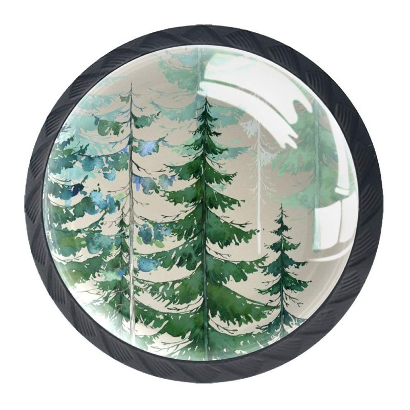 Woodland Forest Green Earth Tones Rustic Print Cabinet Dresser Knobs 4 Pcs Drawer Door Pull Handles for Kitchen Bathroom Unique Drawer Knobs