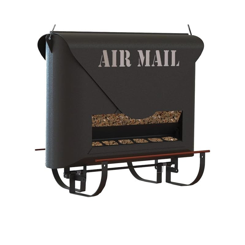 - Metal, weight sensitive bird feeder designed to look like an envelope