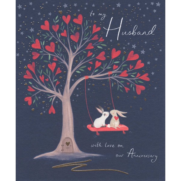 - 💌 GORGEOUS ANNIVERSARY CARD: A cute card featuring two rabbits swinging from a love heart tree, with the message "To my Husband with love on our Anniversary".