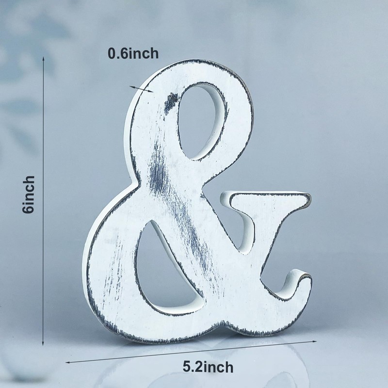 WOODOUNAI 6 Inch Rustic White Wood Letters Unfinished Wood Letters for Wall Decorative White Retro Standing Letters Sign Board Decoration for Craft Home Party Projects (&)