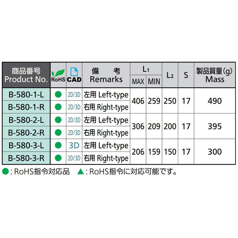 - L1 mm (max): 16.0 inches (406 mm), MIN: 10.2 inches (259