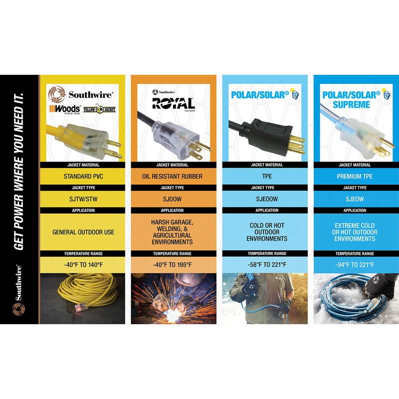 Woods 3030 14/3 Cord Runner Multi-Outlet Extension Cord with Spaced Plugs, 25-FootGet power where you need it with Cord Runner extension cords from Coleman Cable Inc., the maker of "America's toughest cords." These in-line extension cords have 3 evenly-spaced outlets instead of just one at the end and each outlet has a power indicator to let you know when the power is on. The heavy-duty STW cords are durable and outdoor rated 600V for extreme conditions, and flexible even in the coldest weather. Outlet covers help keep water and dust out. Ideal for landscaping, workshops, holiday lighting or any job-site requiring multiple tasks in different areas. For job-site convenience, reliability and performance, professionals know and trust Coleman Cable.