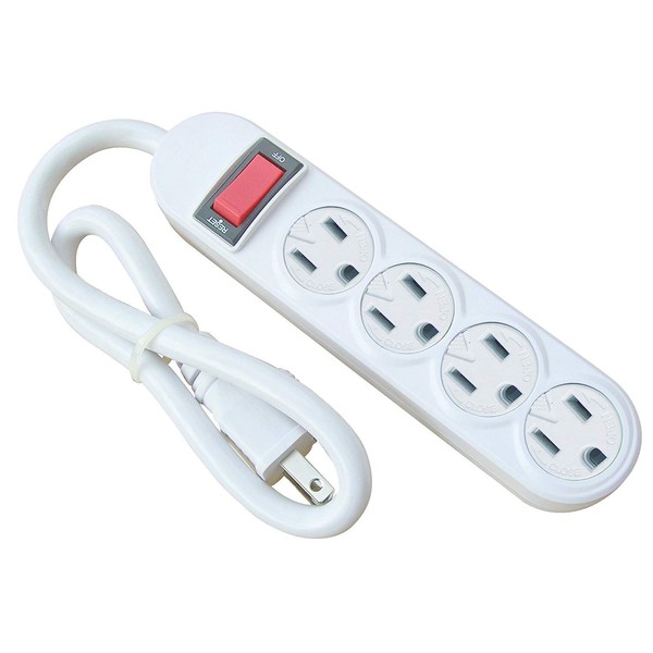 Woods 41299 Power Strip With Overload Safety Feature, 4 Outlets, 1.5 Foot, White