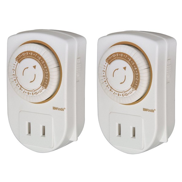 Woods 50006WD Indoor 24-Hour Mechanical Outlet Timer, 30 Minute Intervals,2-Pack,White