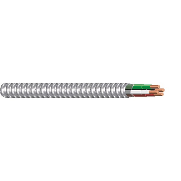 Southwire armorlite type MC cable is constructed with soft-drawn copper, type thhn/thwn conductors rated 90°c dry available in sizes 14 AWG through 2 AWG, and a Green insulated Grounding conductor. The conductors are cabled together and a binder tape bearing the print legend is wrapped around the assembly. Aluminum interlocking armor is applied over the assembly.