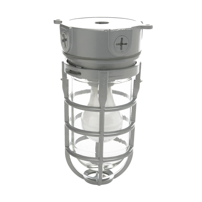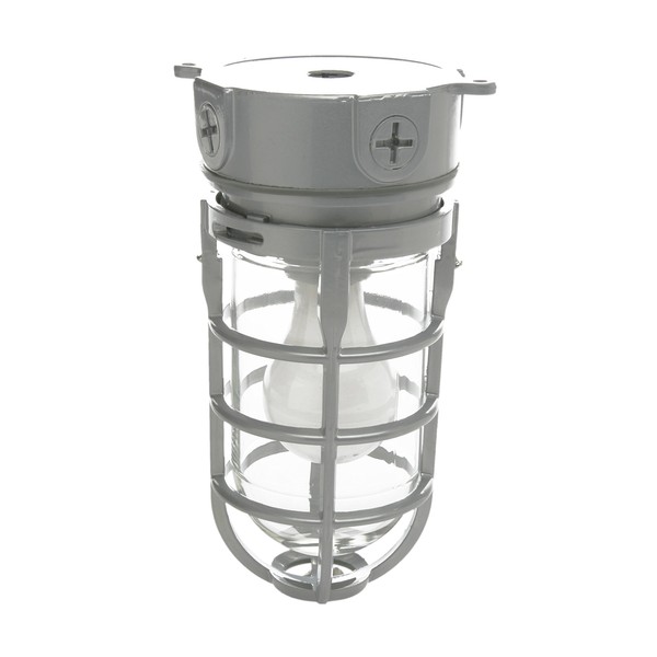 With its industrial look and convenient ceiling-mount design, this L1706 single-light fixture by Designers Edge provides bright, general, overhead lighting to basements, workshops, and other similar spaces. In addition to its tempered-glass lens, the light fixture features all-metal, weather-tight construction compete with rugged caging that protects without substantially reducing light output. Handsome and functional on its own, the light fixture also works well when paired with additional units for a linear or clustered effect (additional fixtures sold separately). A 1/2-inch IPS thread on the top and sides of the light fixture allows for easy installation. Covered by a one- year limited warranty, the UL- and CUL-listed light fixture uses a 150-watt (max) incandescent bulb (not included) and measures approximately 4.5-inches in diameter by 9.5 inches tall.