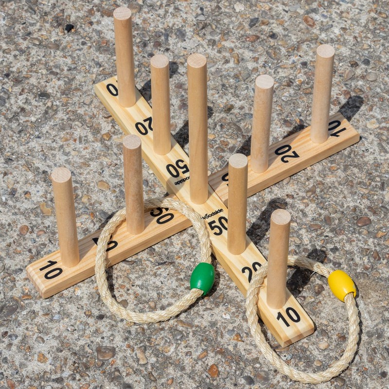 - OUTDOOR QUOITS GAME – A challenging 9 pin quoits game great for summer fun in the garden