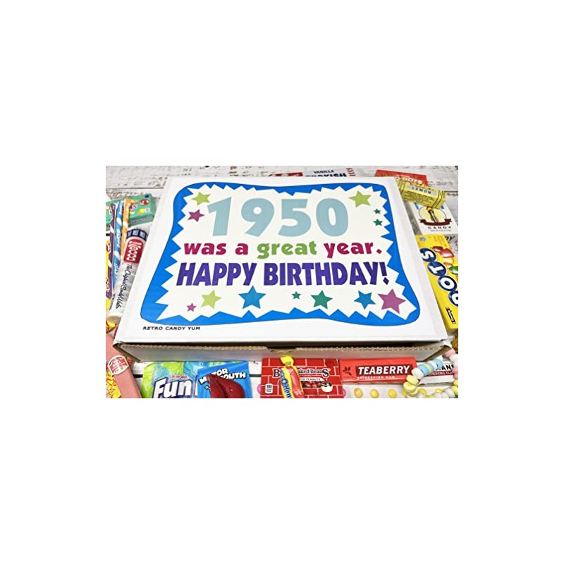 RETRO CANDY YUM ~ 1950 75th Birthday Gift Basket Box of Nostalgic Retro 50s Candy from Childhood for 75 Years Old Man or Woman Born 1950