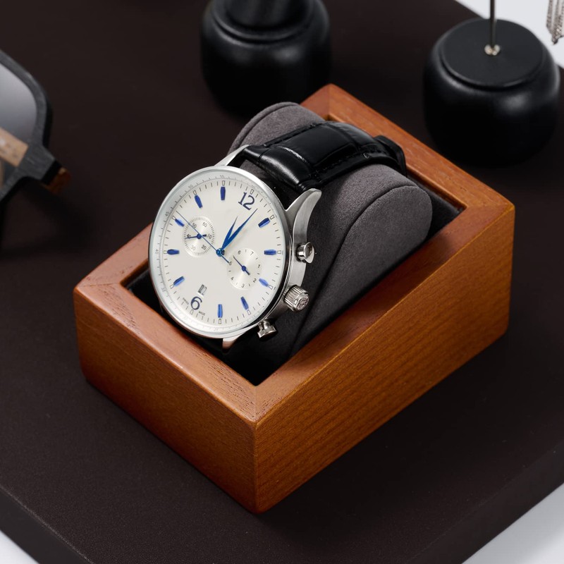 This stylish Watch Stand can ensure your watch is safe and orderly. Keep your watch to avoid scratches during storage or displaying. Made of high-quality solid wood and microfiber. Exquisite and simple, and easy to clean, you only need to wipe the display case with a cloth.