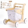 Woodtoe Wooden Baby Walker Doll Stroller | Adjustable Speed Shopping Cart for Toddlers 1-3 | Baby Push Walker - Pretend Play Grocery Cart | Natural Wood Stroller Push Toys for Babies Learning to Walk