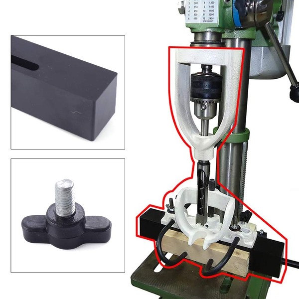 Woodworking Bench Mortiser Square Hole Chisel Drilling Machine, Square Hole Chisel Locator Tool Kit Location Tool Tenon Joint Mortising Attachment Chisel Bit Mortise Tenon Drill
