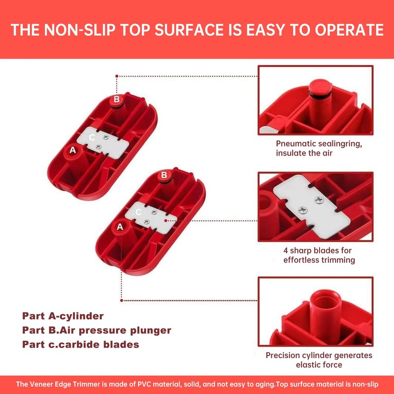 Woodworking Edge Banding Trimmer, Professional Edging Tape Trimming Tool with Tungsten Carbide Blades, Manual Edge Banding Trimming for Woodworking Projects (Furniture and Cabinet Making), Red