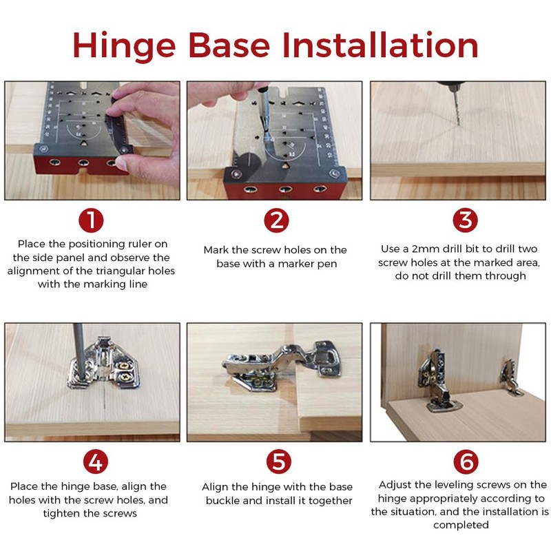 - Versatile and Precise Installation: Our hinge jig is compatible with common 35mm straight-arm and mid-bend concealed hinges, making it the perfect door hinge jig for accurate and efficient installations. Whether you're working on cabinets or doors, this tool ensures perfect hinge placement every time.
