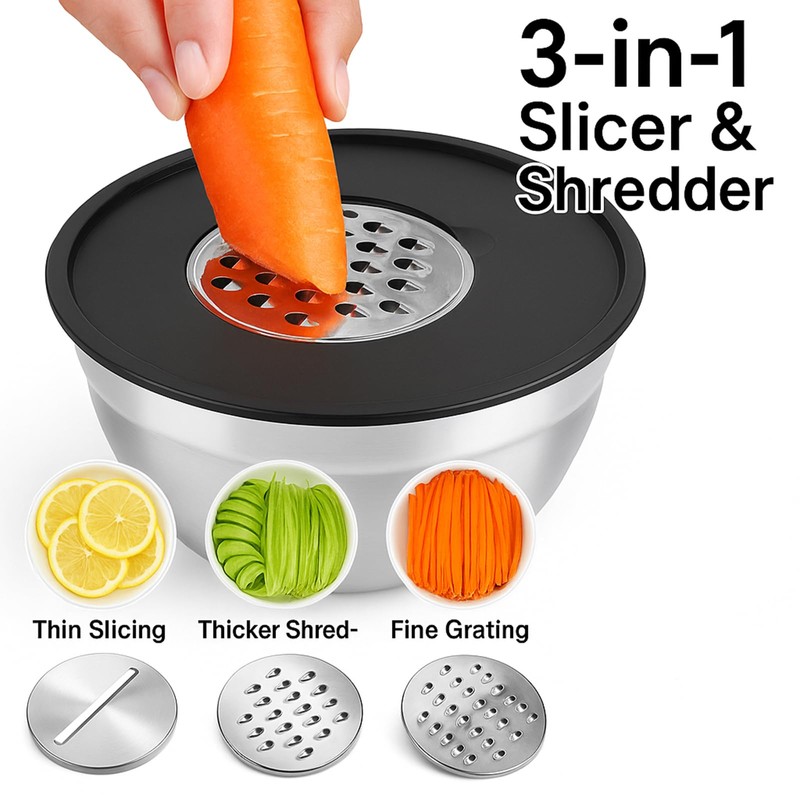 Upgrade your kitchen with the Woofboing Mixing Bowl Set, a sleek and practical solution for everyday cooking, prepping, and storing. Made from premium stainless steel, with non-slip silicone bottoms and tight-fitting lids, this set is designed to make meal prep effortless.