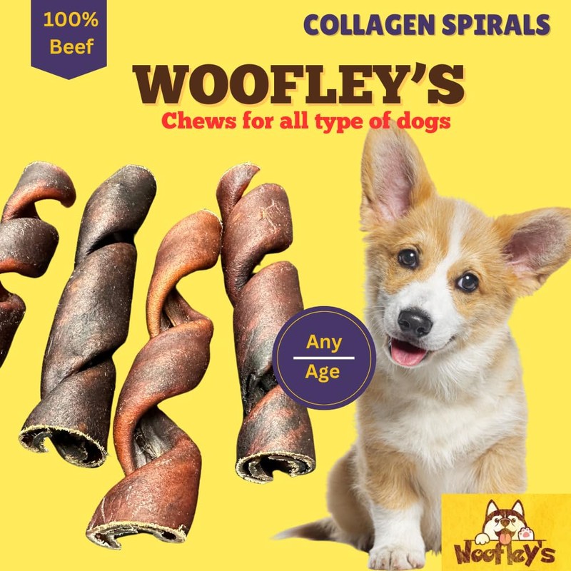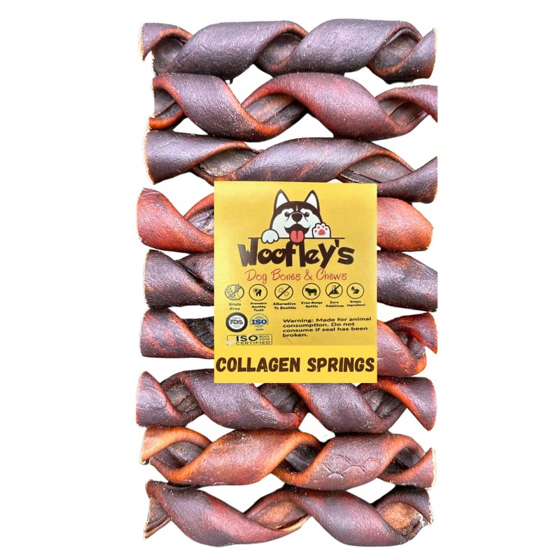 Woofley's 6 Inch Collagen Springs - 12 Count - Collagen Chews for Medium & Large Dogs - Bully Stick Spiral Rawhide Alternative