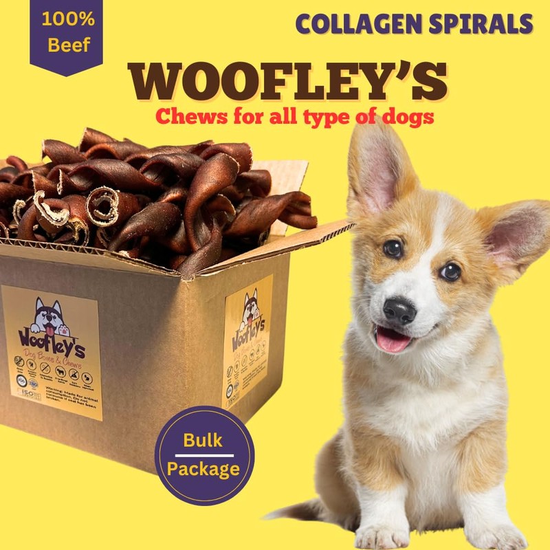 Woofley's is here to make your precious pup wag and brag to their other furry friends! 100% All Natural Collagen Bully Sticks are made from free range and environmentally friendly sourced, Grass Fed beef at our own plants to ensure the best tasting single ingredient dog treats in the world.