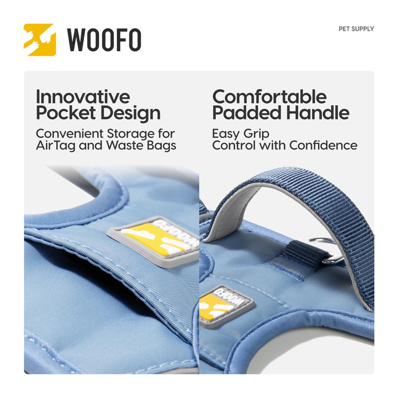 - Find the Perfect Fit: Ideal for your daily strolls, the WOOFO harness has 5 colors and 4 sizes to choose from. Measure your dog's neck and chest girth and simply refer to our size chart for the right fit.